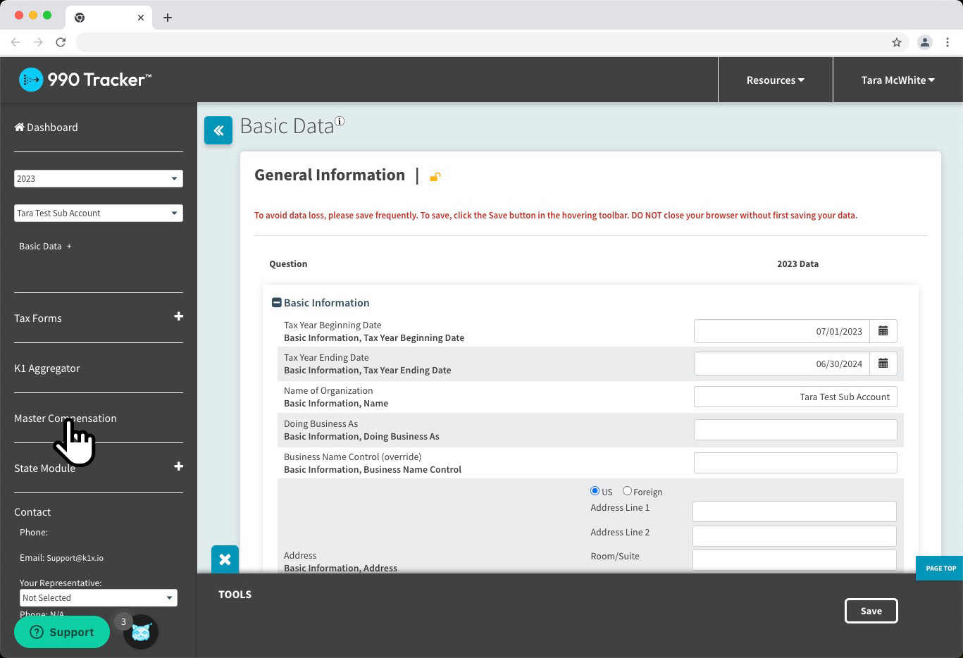 The Master Compensation Module (MCM) allows you to enter compensation in a single place for all entities within your organization. The Master Comp module will automatically determine the reporting requirements for each individual depending on the setup. To access the module, click on the Master Compensation link in the left-hand navigation panel.