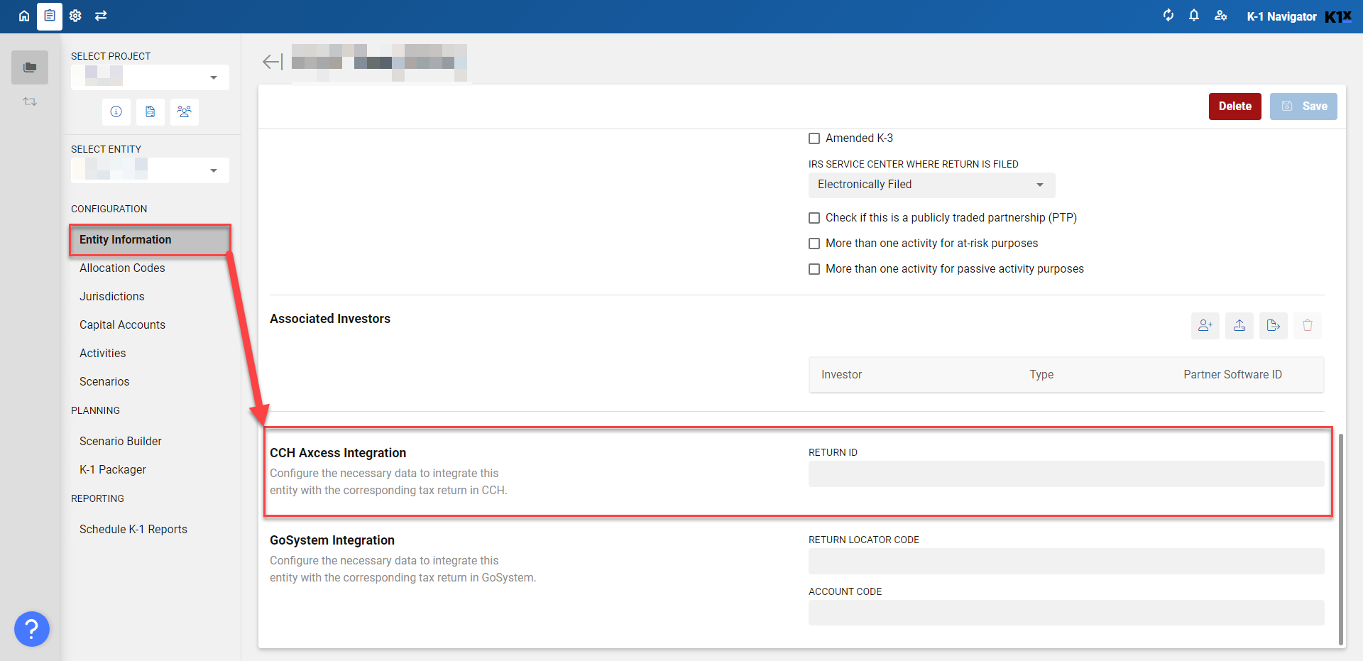 - Investment Name, Investment EIN, and Activity Number for each activity being sent must be entered in K1 Aggregator and match CCH. For each instance being sent, the Return ID from CCH must also be entered.