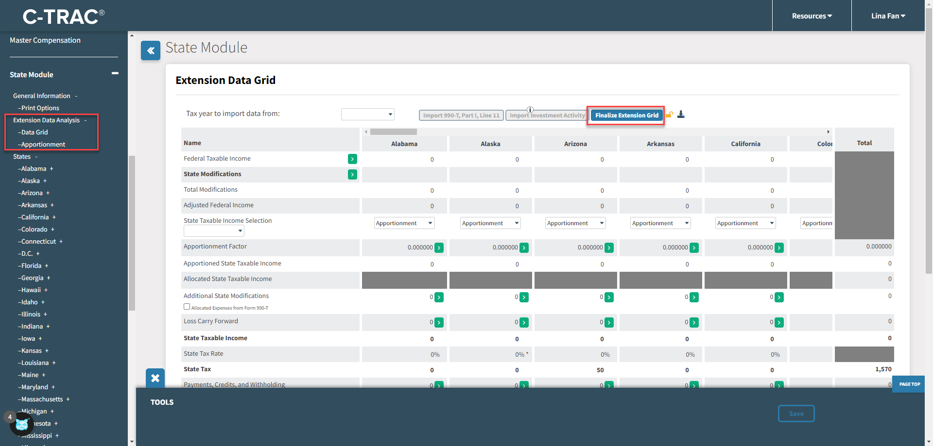 4. After you finalize your Extension Data Grid, it will be locked for read-only mode and now the option for the State Data Analysis > Data Grid will appear in the lefthand side.