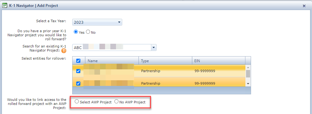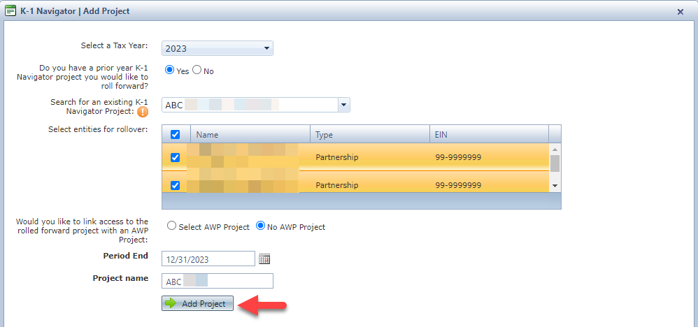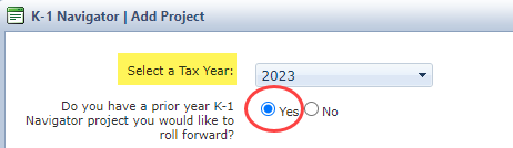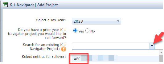 - Select an existing K-1 Navigator Project.