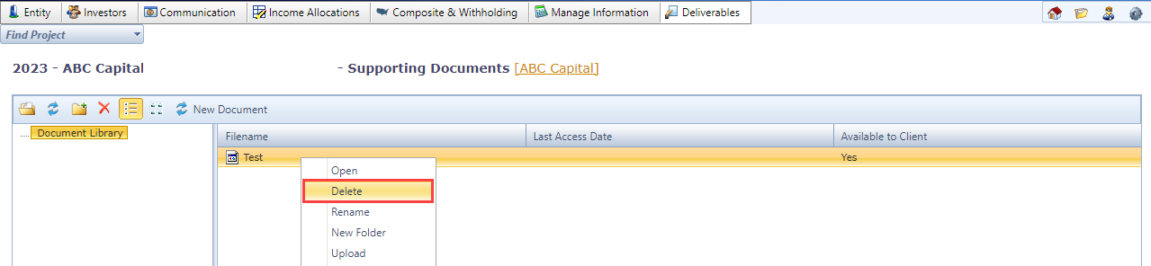 - To add a new deliverable, select “New Document.”