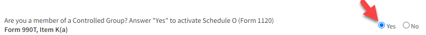 - Answer "Yes" to the Controlled Group question.