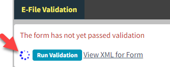 Issue: The e-file validation tool does not work. It just spins.