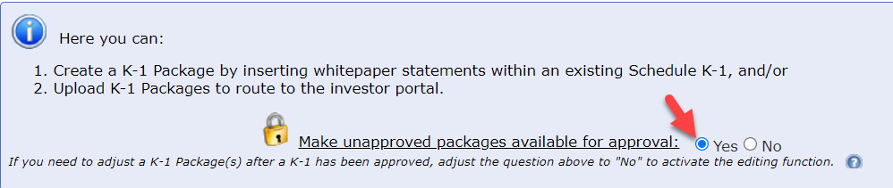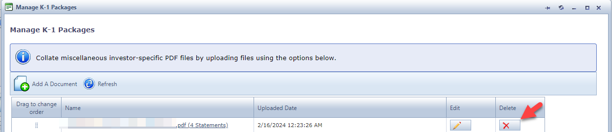- Go into the "Manage K-1 Packages" modal