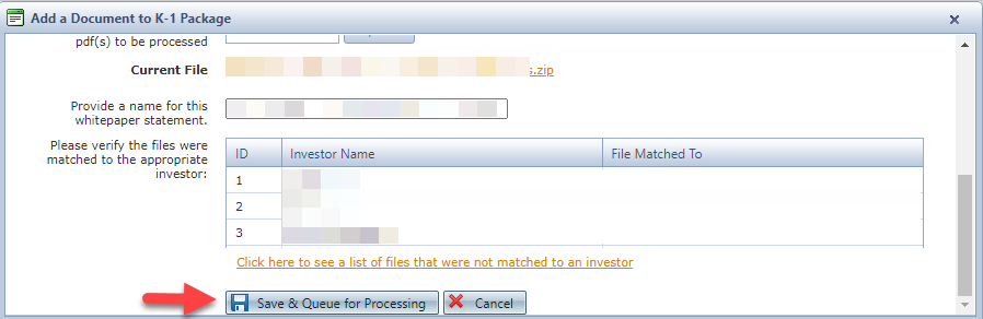 - Click "Save & Queue for Processing"