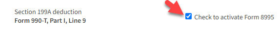 - Check the box to activate Form 8995 .
