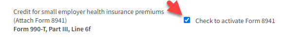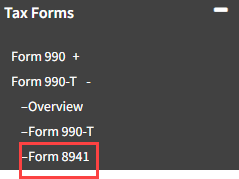 - Form 8941 is now active under Tax Forms -> Form 990-T.