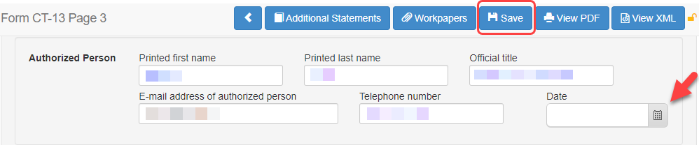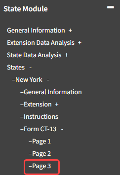 - Navigate to State Module -> States -> New York -> Form CT-13 -> Page 3