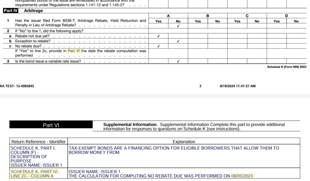 The dates print to Part VI as required by the instructions, this is working as designed.