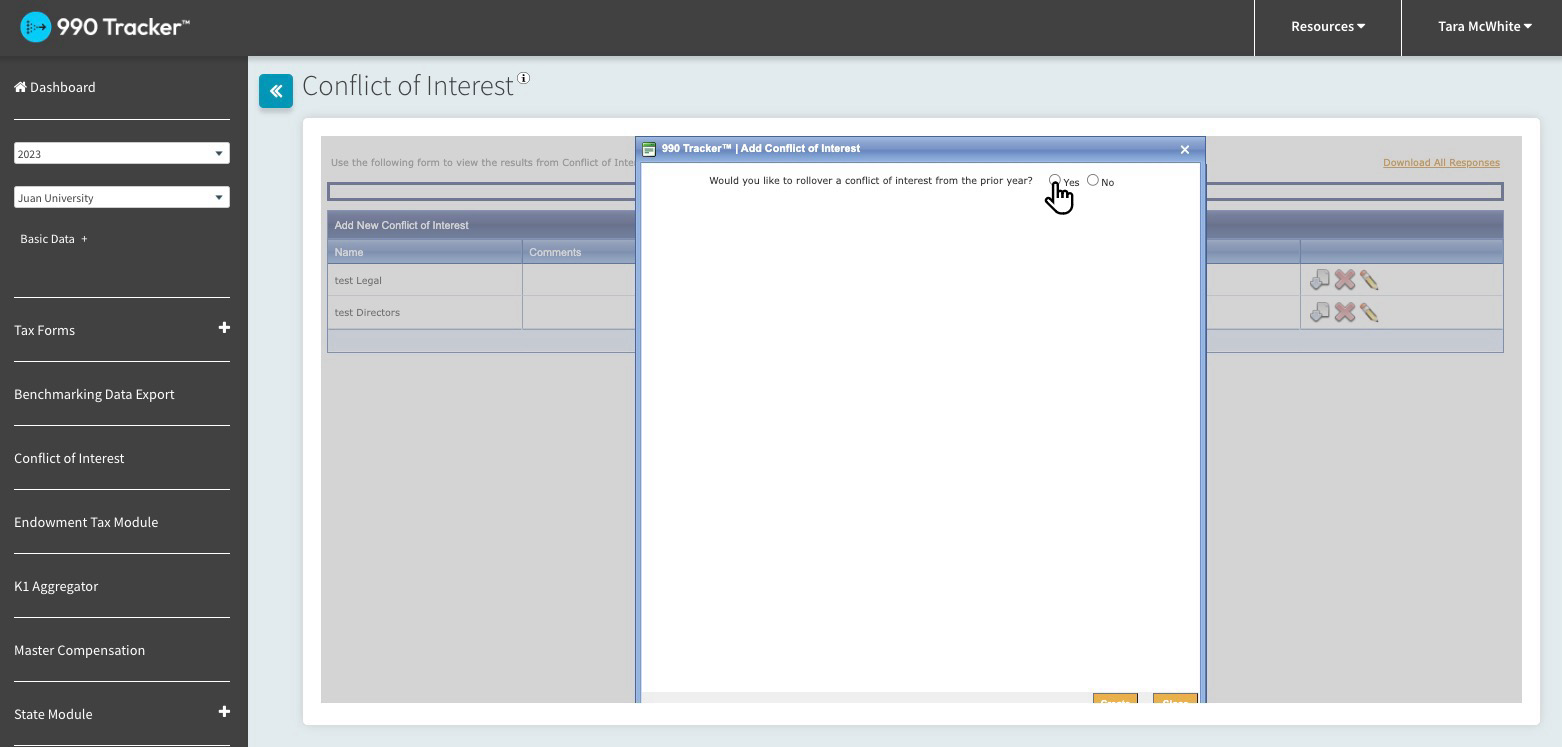 - Navigate to the COI page for the new tax year