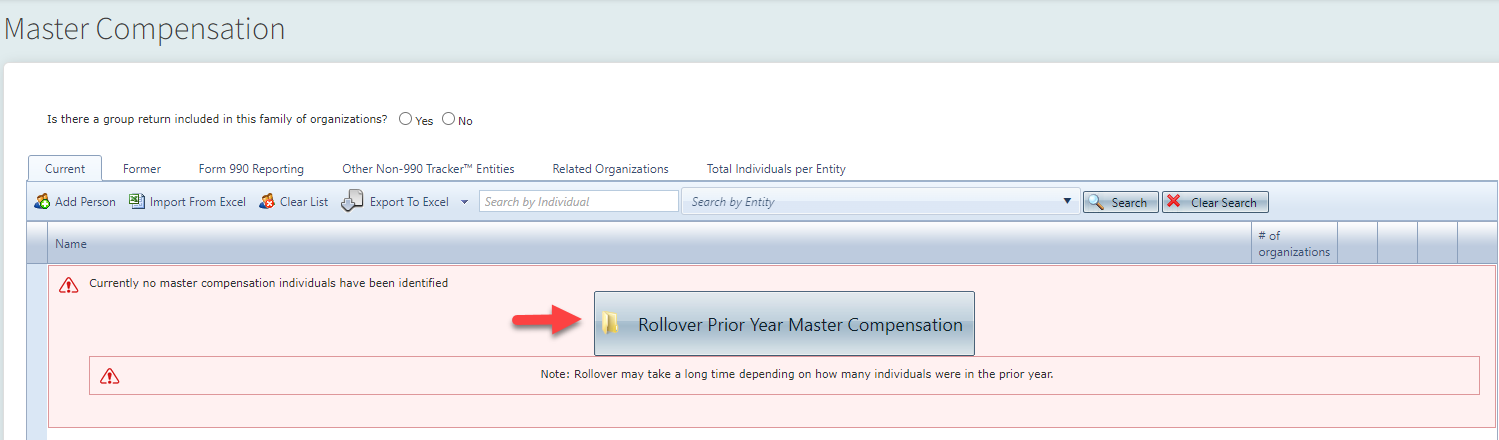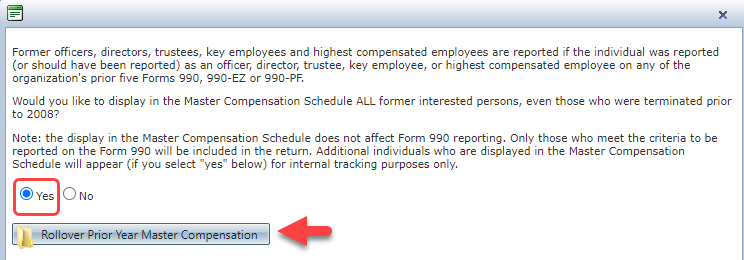 Note: Steps 3 and 4 are important steps when initially rolling over the Master Compensation module.