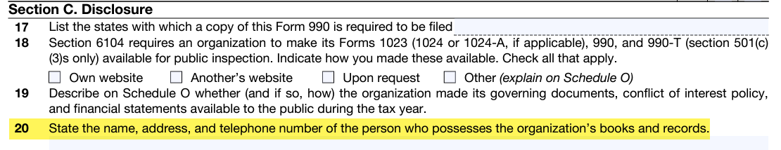 Issue: The client needs to update Form 990, Part VI, Section C, Line 20 in the pdf, but it is not available in the User Interface of Form 990, Part VI.