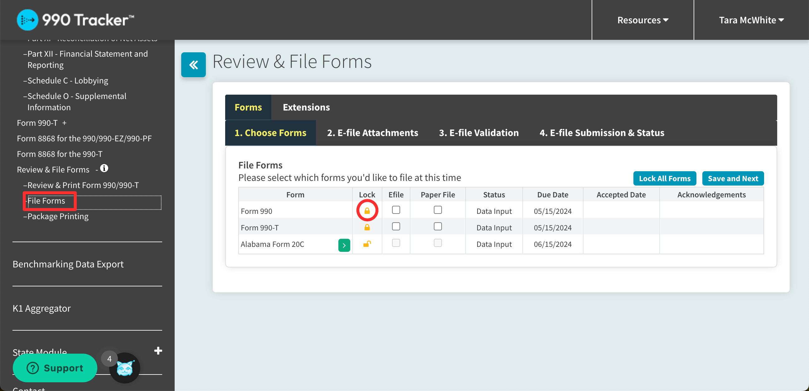 How do I unlock federal forms such as the 990, 990-T, 990-PF, and 4720?