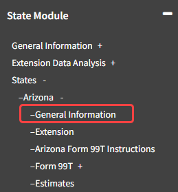 - Navigate to State Module -> States -> Arizona -> General Information